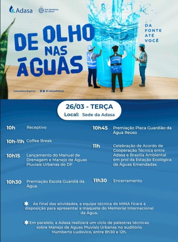 O público presente terá a oportunidade de conhecer a maquete do Memorial Internacional da Água – MINA, concebido por Oscar Niemeyer, o complexo arquitetônico contemplará o Museu Internacional da Água, o Centro de Estudos da Água, um teatro e um estrutura administrativa e de governança. O Projeto MINA é coordenado pela Adasa com o apoio do Governo do Distrito Federal e da Caesb.