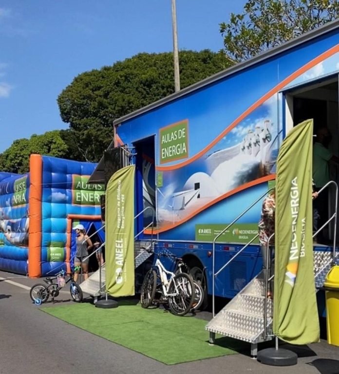 Brasília (DF), 16 de julho de 2024 – A Neoenergia está com seu caminhão adaptado para funcionar como sala de aula e laboratório no Jardim Zoológico de Brasília até quinta-feira (18) e, no sábado (20) e domingo (21), na Escola Técnica durante o Hackacity Guará. A Unidade Móvel Educativa (UME) promove aulas sobre Eficiência Energética de forma interativa e tecnológica para crianças e adolescentes sem custo.