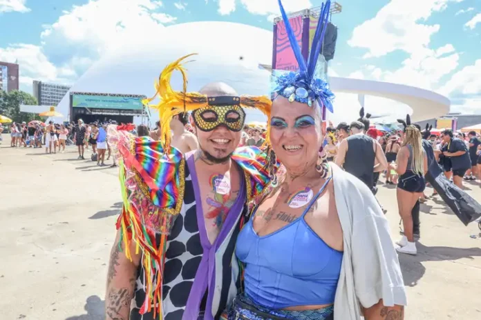 O Bloco do Amor faz carnaval respeitoso no DF como uma forma de resistência política e poética no coração da capital federal. Aceitar as diferenças é um ato revolucionário e, por esse motivo, o evento se consolidou como um dos espaços mais seguros para a comunidade LGBTQIAPN+. Certamente, a celebração carrega consigo um potencial transformador que promove a paz e o acolhimento em meio à folia brasiliense. Com onze anos de história, o coletivo demonstra que a alegria pode caminhar de mãos dadas com a conscientização social. Foliões celebram a diversidade no centro de Brasília. Foto: Valter Campanato/Agência Brasil.